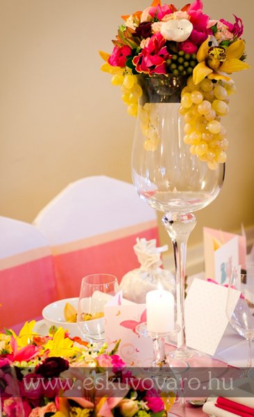 Elérkeztünk tehát arra a pontra, ahol alapvetően el szokott dőlni, mi lesz az esküvő helyszíne. Ez lehet lakodalmas ház, művelődési központ, rendezvényterem, kastély, tornaterem, galéria, étterem, sátor, vagy az égvilágon bármi, ami alkalmas a céljainknak. Ezzel egy fontos döntést is meg kell hoznunk: az adottságok és lehetőségek figyelembe vételével le kell szűkítenünk a színek, stílusok körét azokra, amik jól mutatnak a kiválasztott helyszínen. Sajnos sokan elkövetnek olyan hibát, hogy az elképzeléseiket, terveiket, amiket még a helyszín megtalálása előtt alakítottak ki a fejükben, nem igazítják a végleges körülményekhez. (Erről a következő bejegyzésben szeretnék bővebben is írni, összegyűjtve és bemutatva pár bakit az esküvői dekoráció körül.) Óvatosan kell bánni a színek összeállításával, arányaival, de még a díszítéshez felhasznált anyagokkal is a tökéletes összhatás érdekében. A stílus kiválasztása után következhet az alapszín, majd az ezt kiegészítő kísérőszínek meghatározása, s végül az esküvő szervezésének legkellemesebb része: képek, gyűjtögetése, közös ötletelés a barátokkal, családtagokkal, dekoratőrrel, meghívóssal…