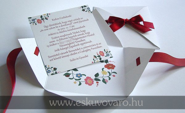 – Különböző mértékben alkalmazandó magyaros motívumok, amik megjelenhetnek a terítéken, a fali dekorációban, a meghívókon, az ifjú pár öltözékén, vagy épp az esküvői tortán. Fontos, hogy egyetlen motívummal illetve annak különböző változataival dolgozzunk, ne keveredjenek a stílusok!